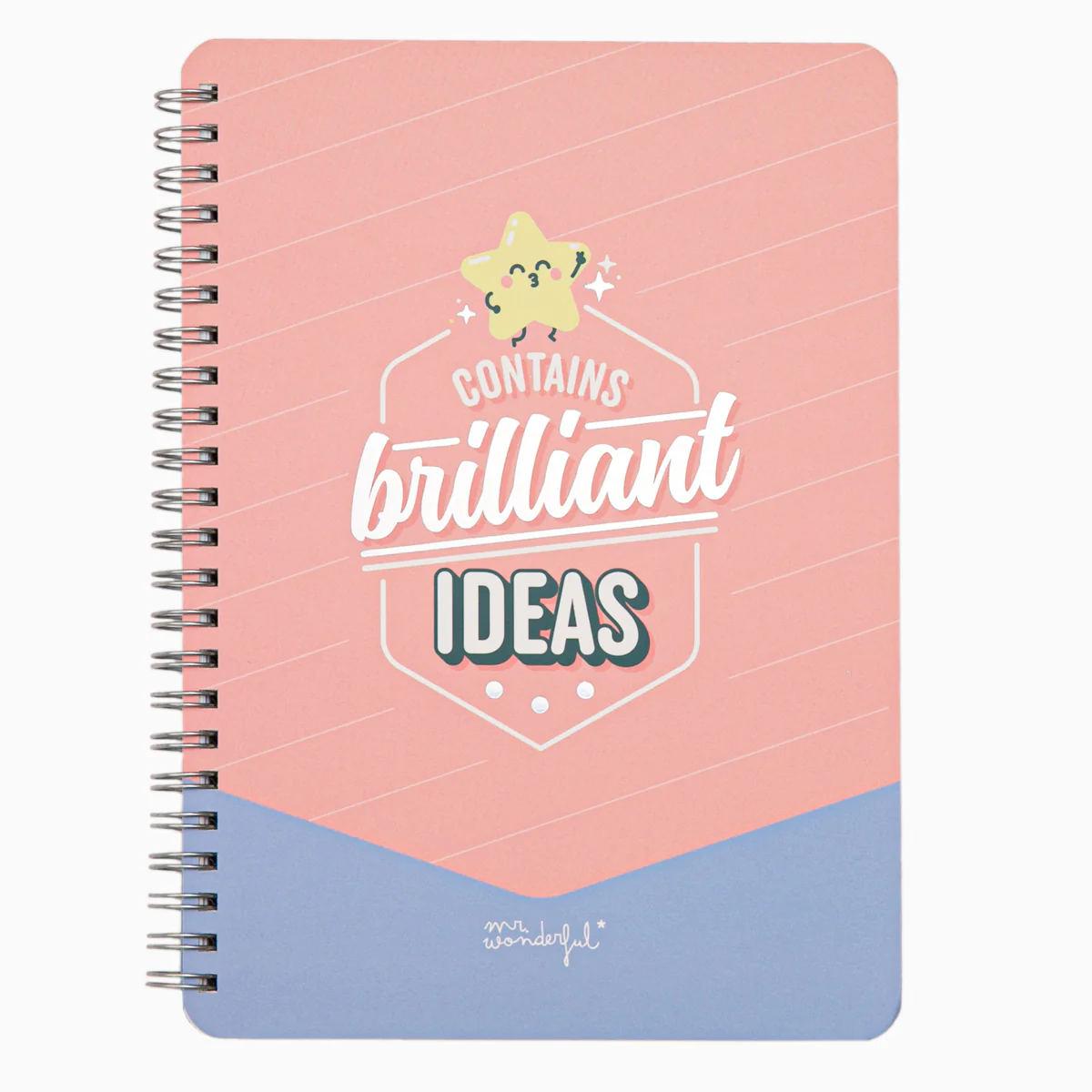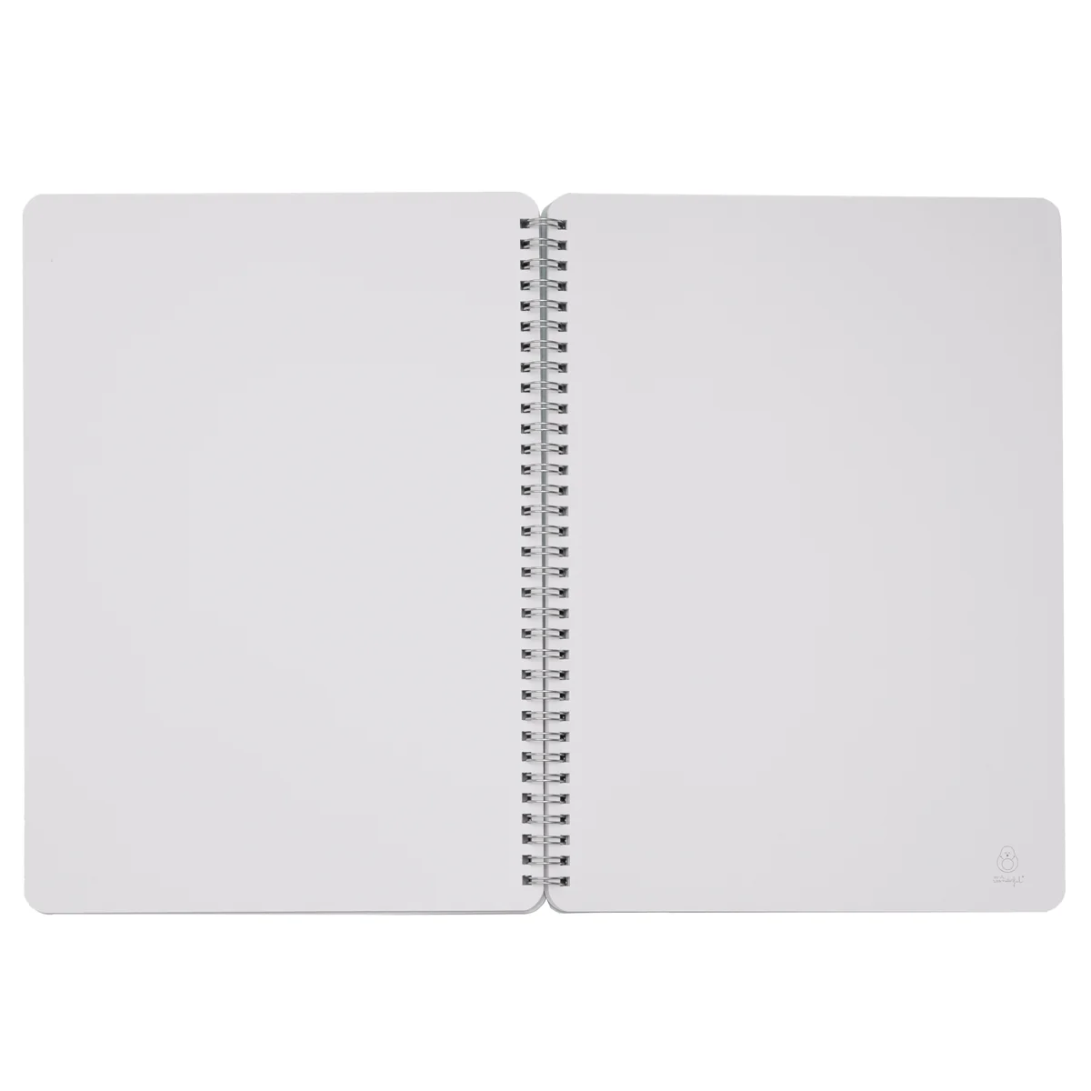 A5 size notebook, with spiral binding, hard cover and 80 white sheets of 80g paper inside. In addition, it contains a sheet of fun stickers.