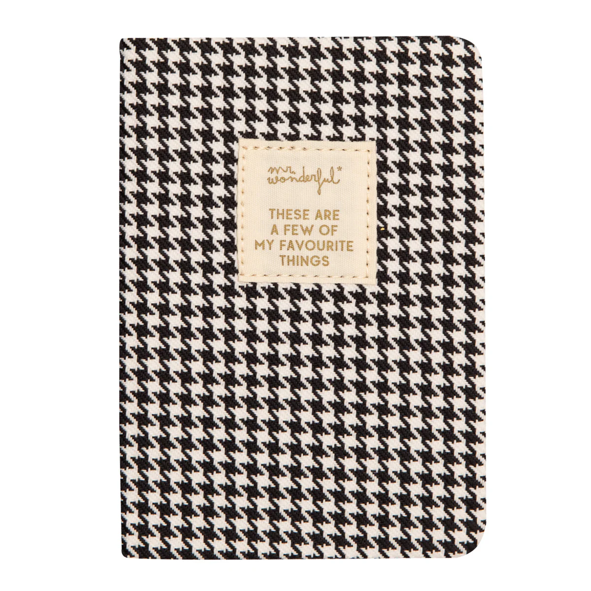Libreta de tamaño A6 con portada forrada de tela con estampado de pata de gallo. En su interior encontramos 160 páginas pautadas elaboradas con papel de 90gsm. Cuenta con el certificado FSC, que garantiza que ha sido fabricada utilizando papel proveniente de bosques gestionados de forma responsable.