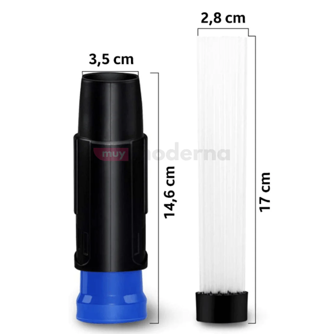 Adaptador incluido para conectar a la interfaz de una aspiradora que tenga un diámetro interior de 32 a 35 mm. Esto significa que es adecuado para casi todas las aspiradoras!