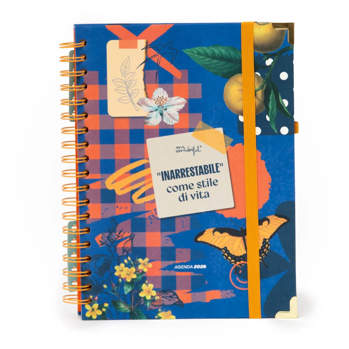 Agenda Office di Mr. Wonderful, con un design più sobrio e discreto rispetto al nostro stile classico, ideale per un pubblico leggermente più adulto. Con organizzazione settimanale, copre il periodo da gennaio a dicembre 2026 ed è più grande rispetto alle altre agende della collezione, rendendola perfetta come agenda da scrivania.