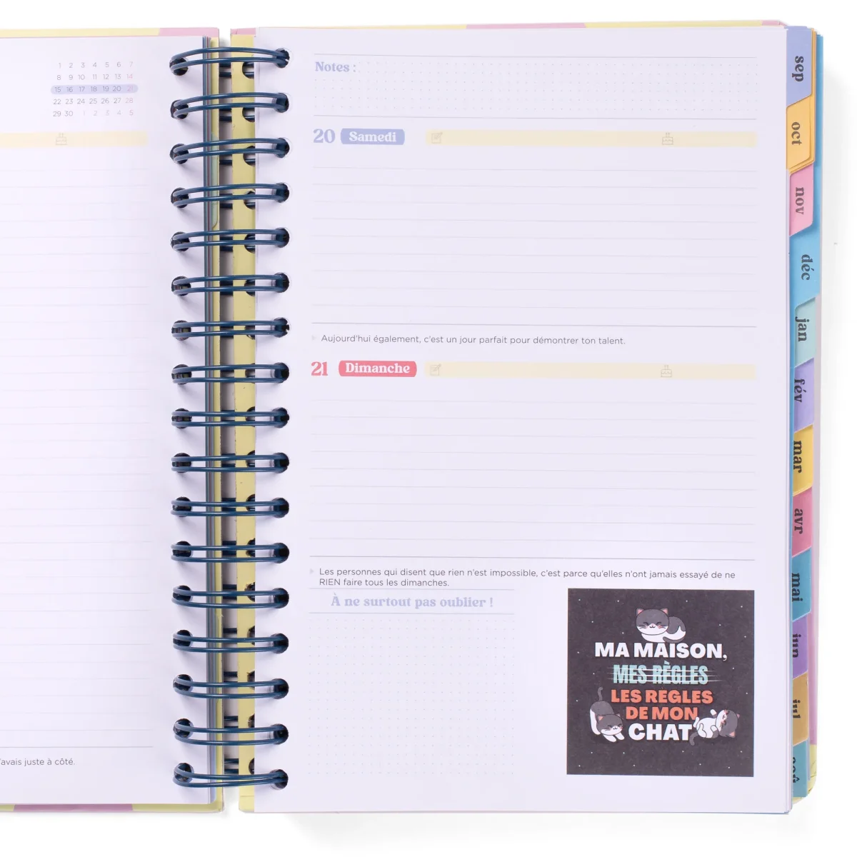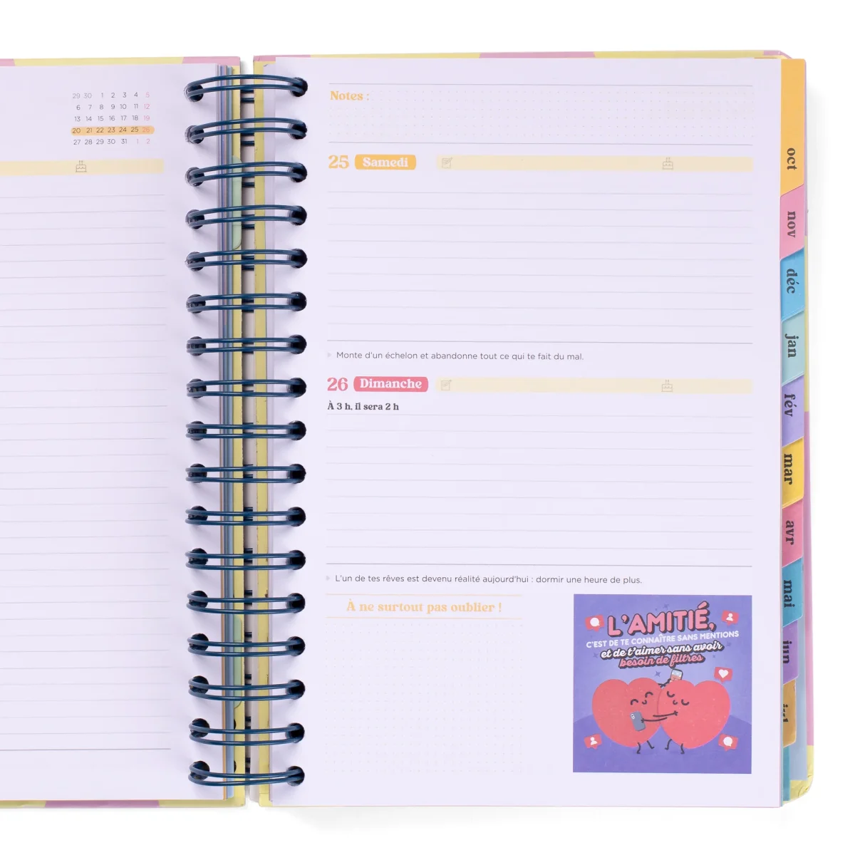 Agenda de style Wonder de Mr. Wonderful, avec une organisation journalière allant de septembre 2025 à fin août 2026. Cet agenda contient :