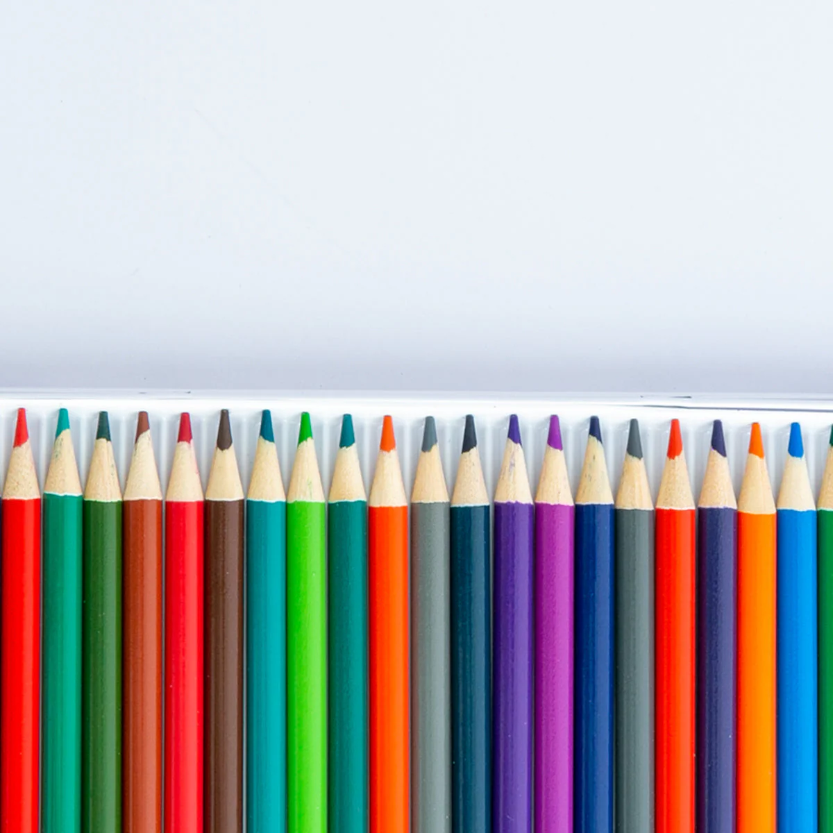 24 lápices de colores de doble punta, se presentan en una caja de lata el mensaje impreso en ella.