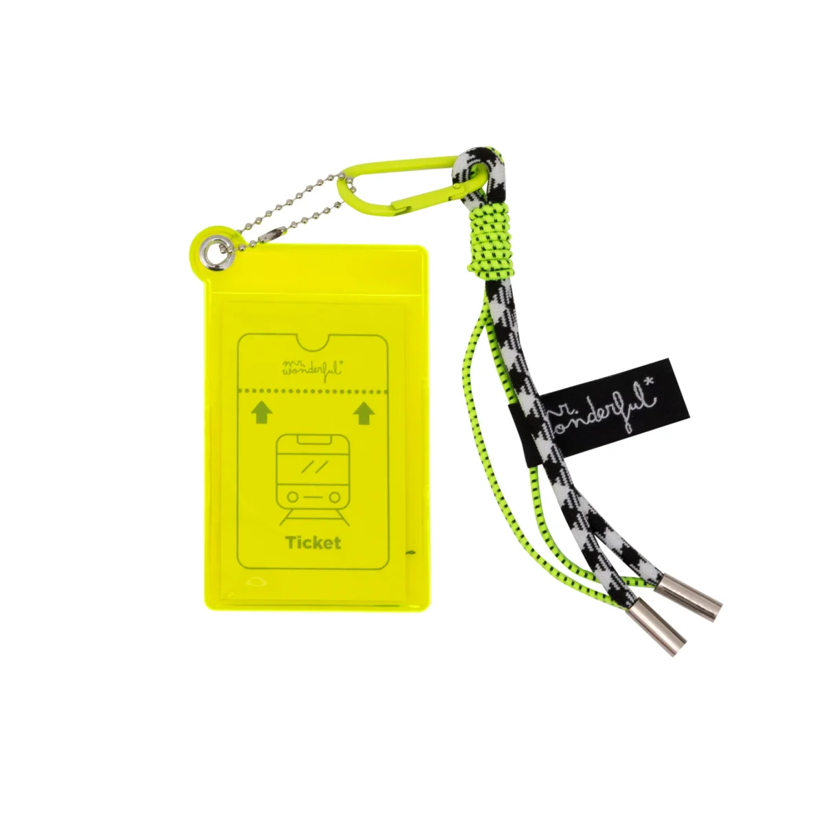 Funda de plástico transparente en color amarillo, ideal para llevar en ella los títulos de transporte y otras tarjetas. Cuenta con un divertido enganche en forma de mosquetón, perfecto para colgarlo de la mochila, por ejemplo, y tenerlo siempre a mano. Como accesorio decorativo, incorpora un moderno cordón grueso que hace un gran nudo, lo que le confiere originalidad.