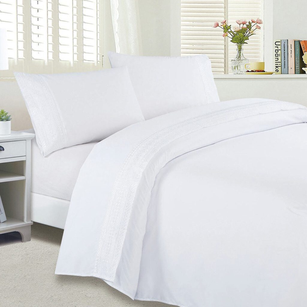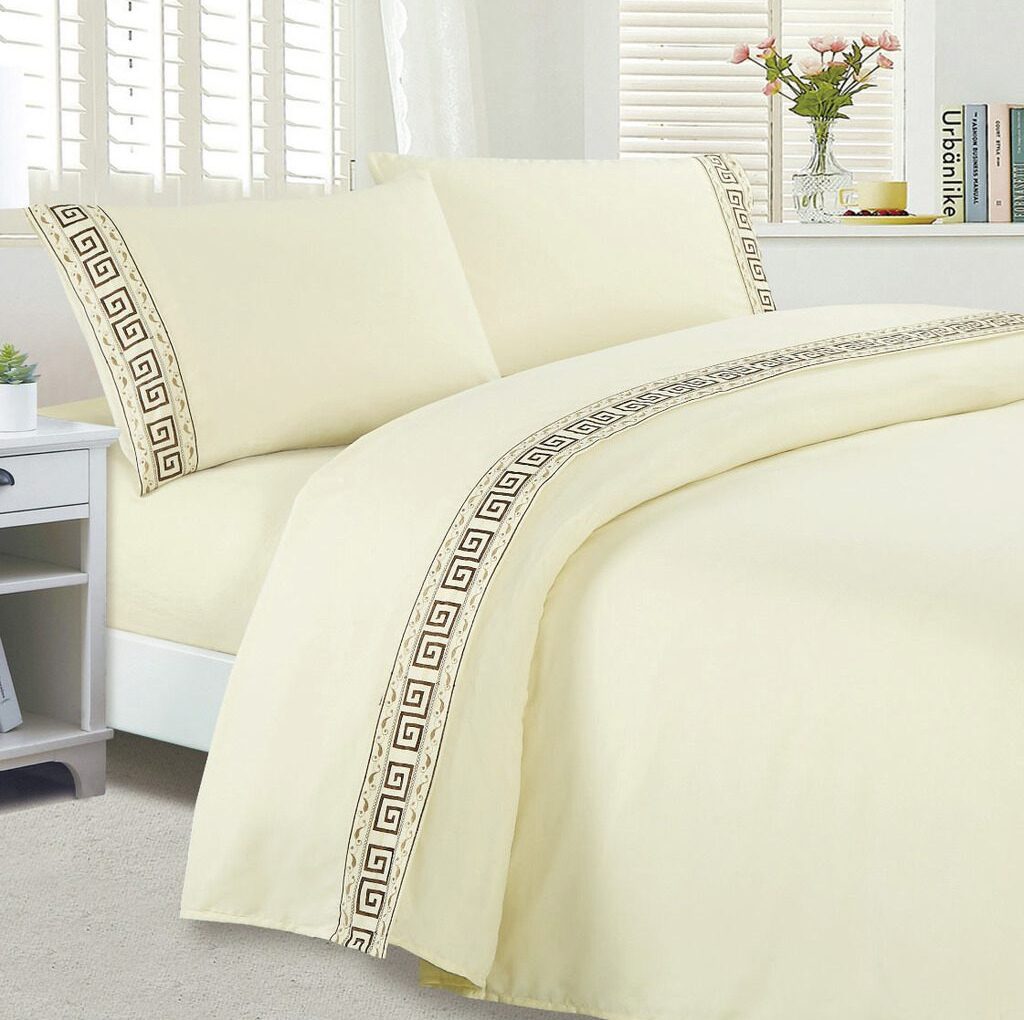 Juego de sábanas confeccionado en Cotton touch. Extra suave, posee un bordado en el embozo y en ambas fundas. Calidad superior asegurando un placentero descanso y confort.