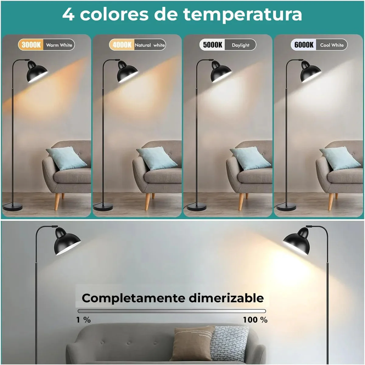 Nuestra lámpara de pie cuenta con una altura ajustable y un cuello de cisne giratorio, permitiendo que se acomode perfectamente donde la necesites.