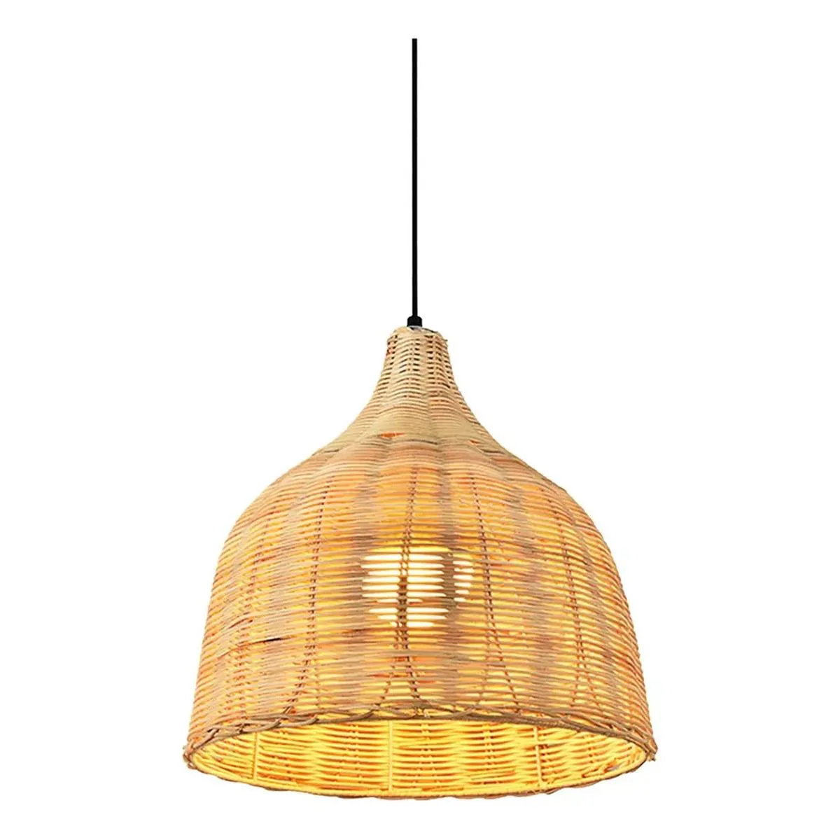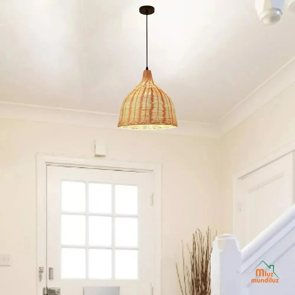 Con su diseño en bamboo y forma ovoide, esta lámpara se integra perfectamente desde lo rústico hasta lo moderno, adaptándose a cualquier espacio de tu hogar.