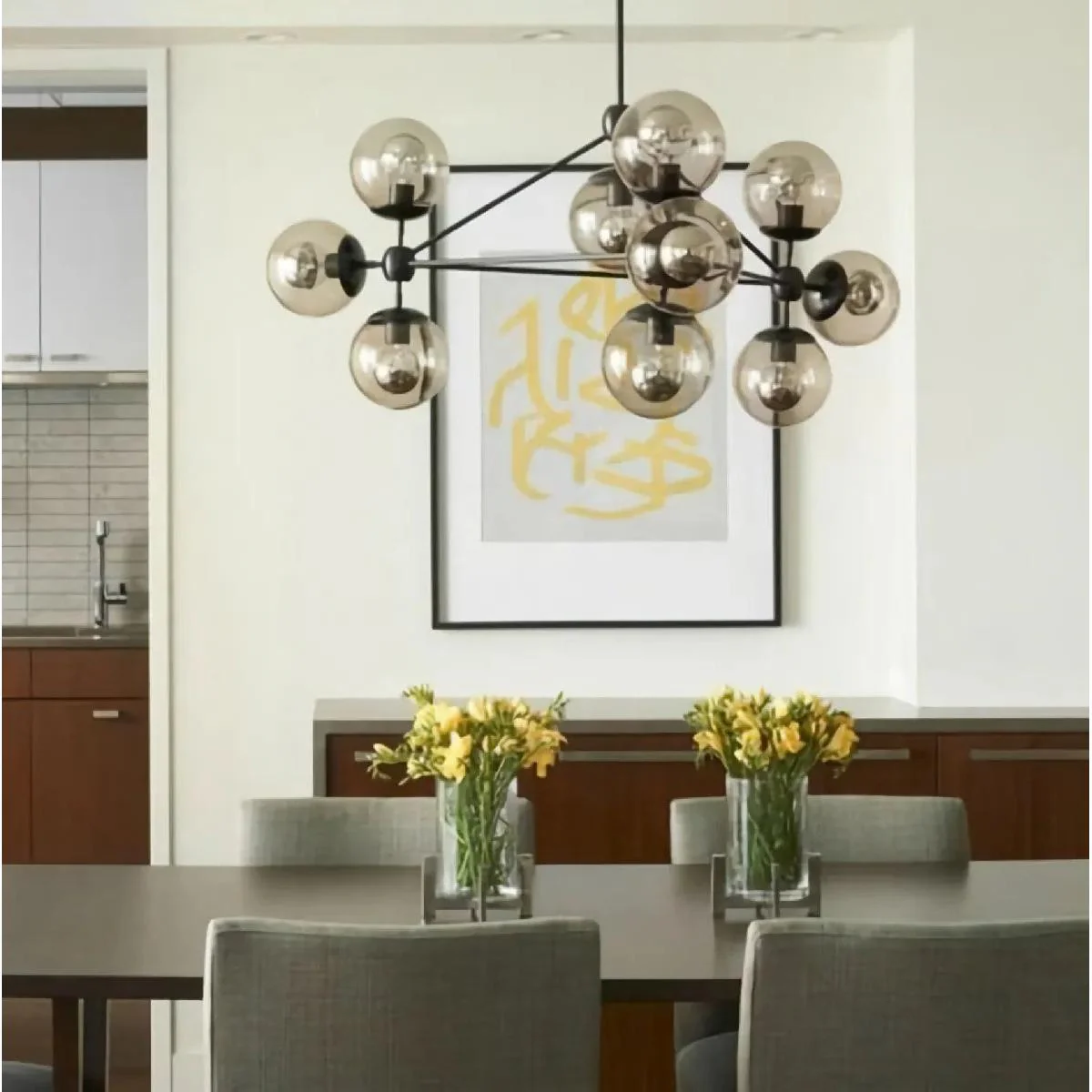 Con su cristal ámbar y diseño de metal, este candelabro combina lo mejor del estilo vintage con un toque moderno, perfecto para cualquier decoración contemporánea.