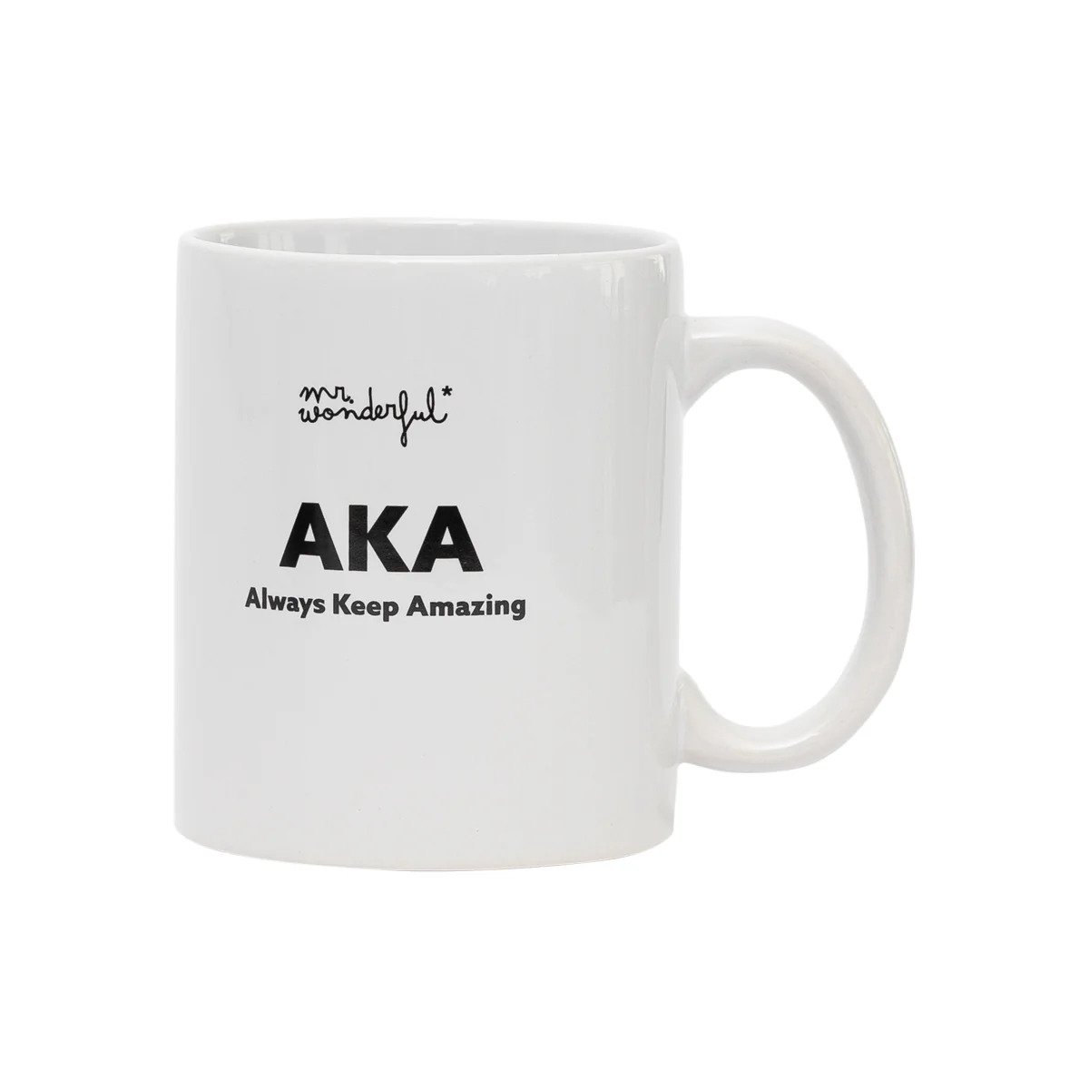 Taza realizada en cerámica, con el famoso acrónimo en inglés “AKA”, que equivaldría a “Also Known As”, pero al que le hemos dado una nueva interpretación wonderful: Always Keep Amazing. Capacidad: 30 cl