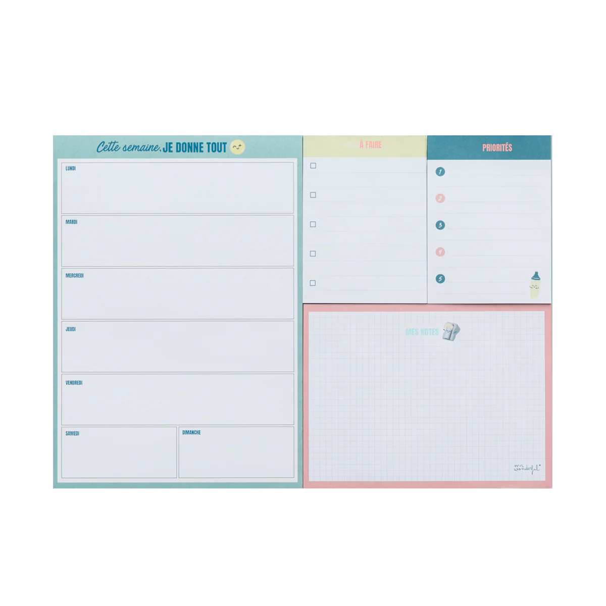 Pour que tout soit sous contrôle, semaine après semaine, grâce à ce super planning. En plus, il comprend de nombreuses notes adhésives !