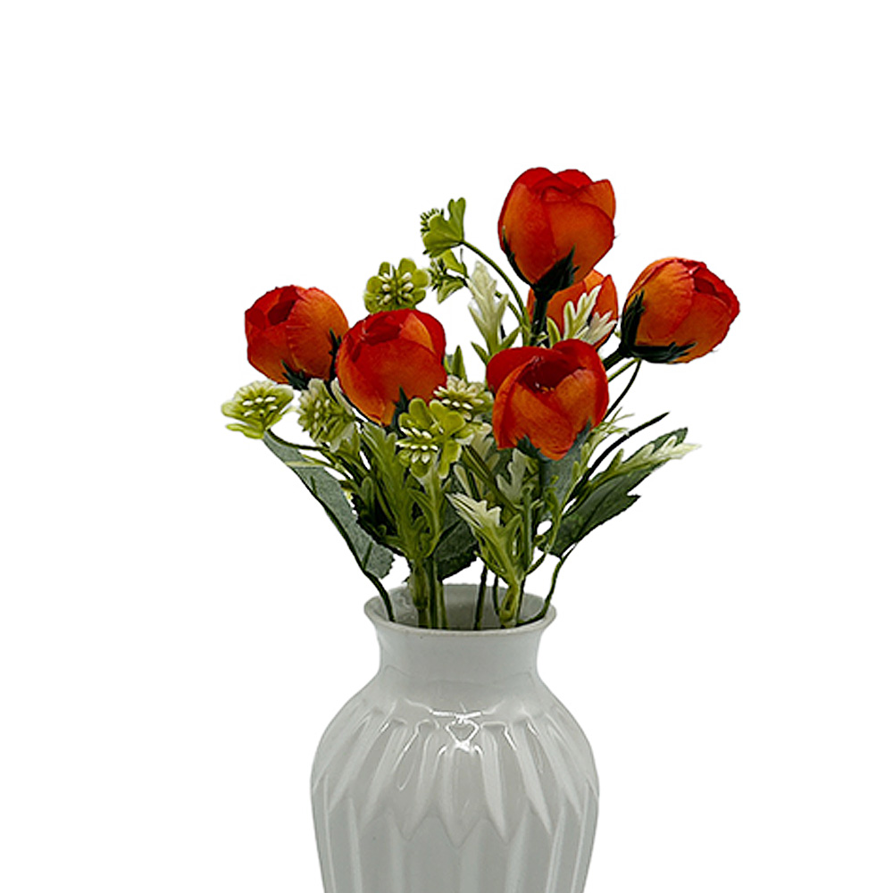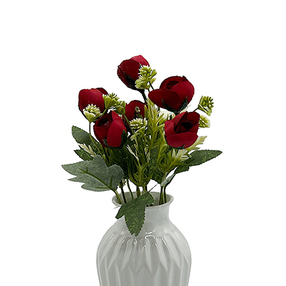 MEDIDAS: Alto: 33 cm. Contiene: 6 pimpollos. Diámetro de la flor: 3 cm.