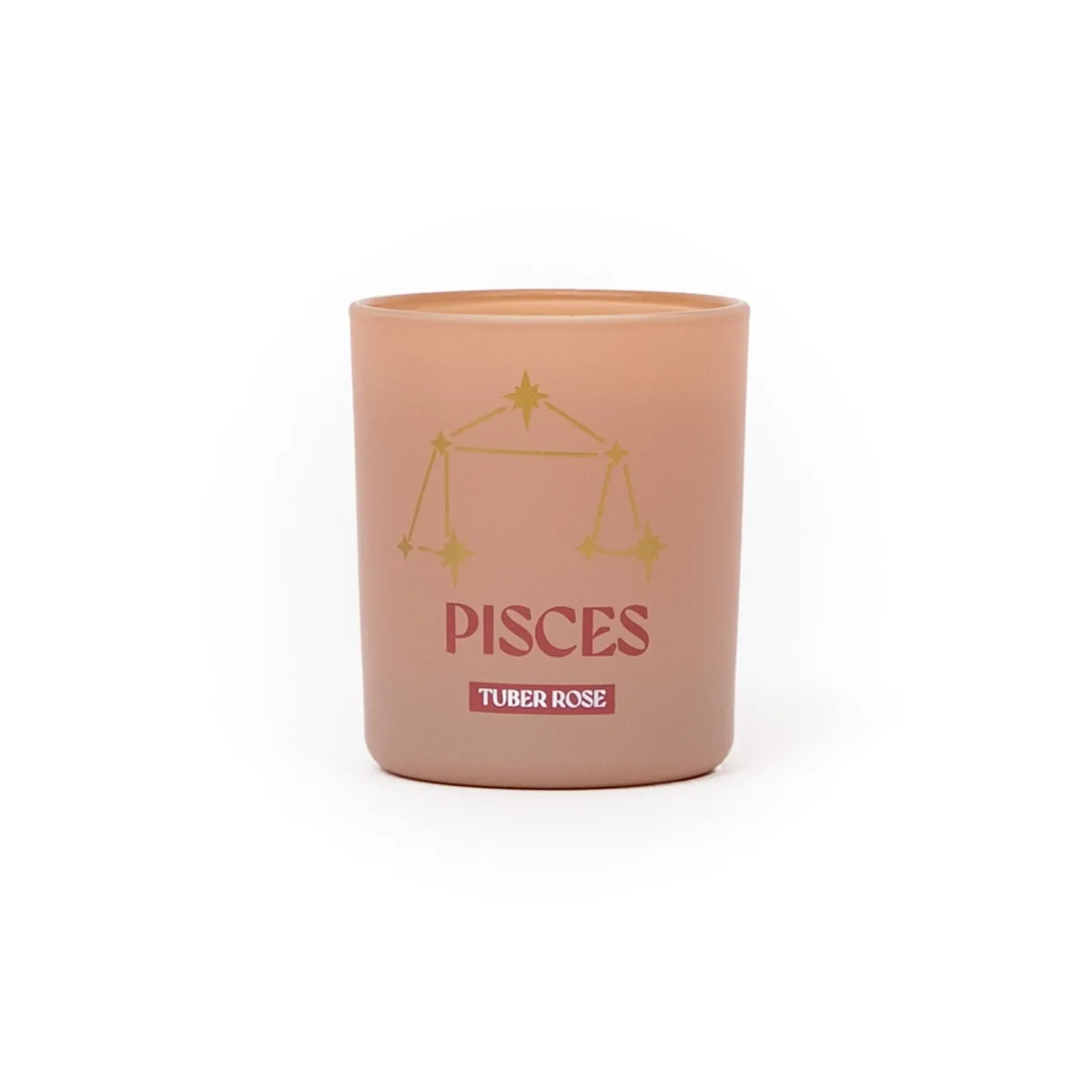 Vela perfumada con aroma a Tuber rose. Se presenta en un envase de vidrio en el que se ilustra el nombre en inglés y la constelación del signo zodiacal de Piscis.