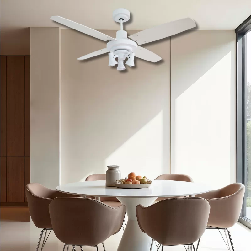 Ventilador de Techo Barcelona Blanco con Plafón Manny y Palas de Madera Laqueadas Blancas
