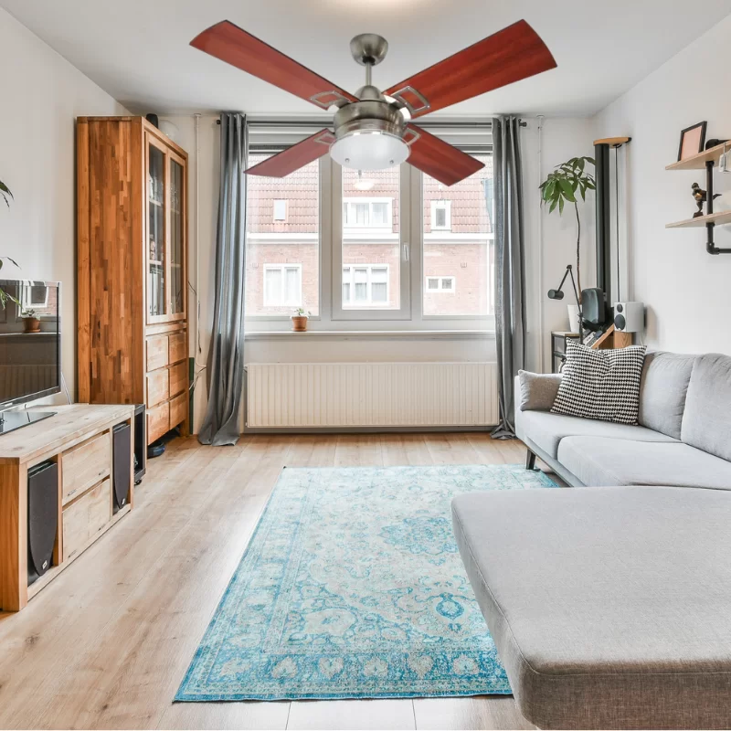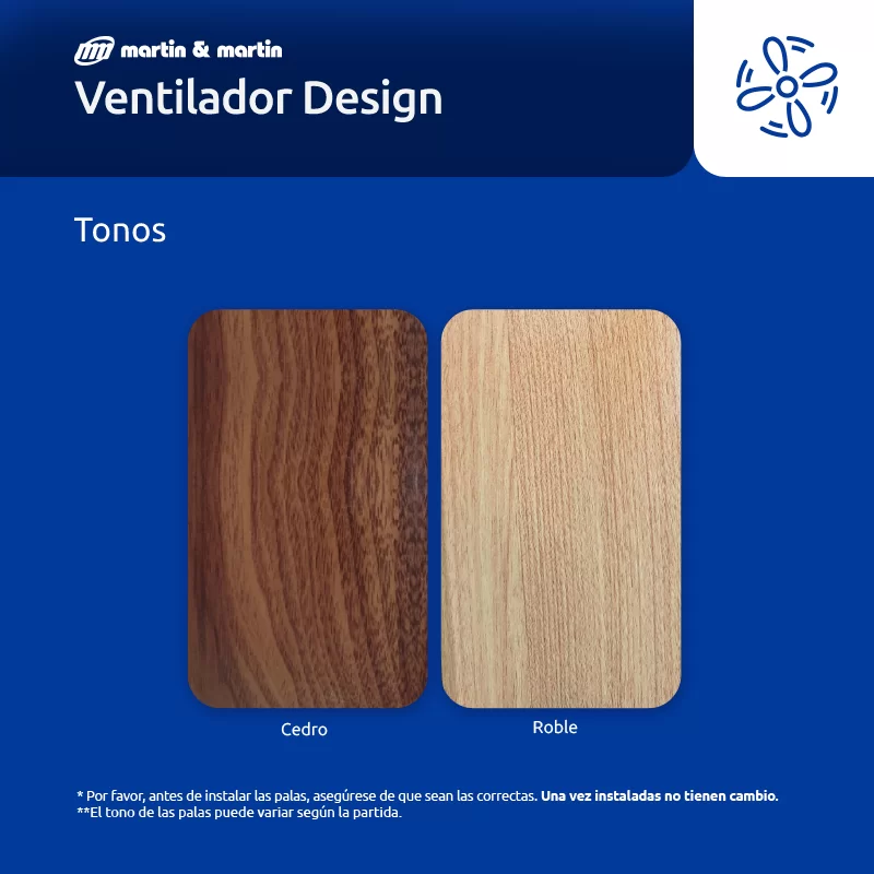Ventilador de Techo Design Platil con Plafón BC 27 y Palas de Madera Reversibles tono Cedro y Roble