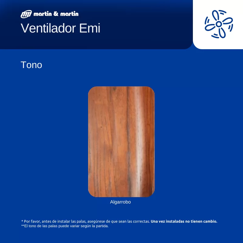 Sé el primero en valorar “Ventilador de Techo Emi Negro Texturado con Palas de Madera Tono Algarrobo”