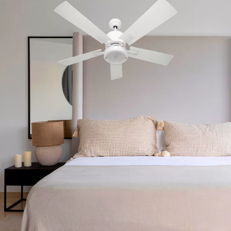Ventilador de Techo Seventeen Blanco con Plafón Cosmos LED y Palas de Maderas Laqueadas Blancas