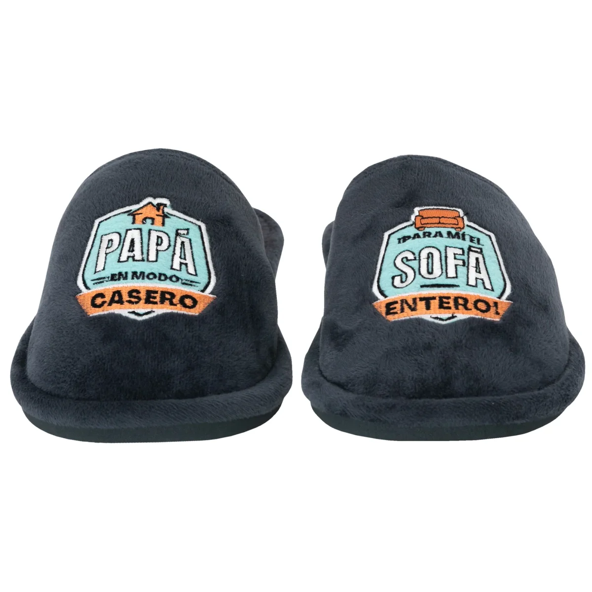 Zapatillas de estar por casa con mensaje dirigido a padres. El mensaje, en español, se divide entre ambas zapatillas. Talla 40-43. Las zapatillas están realizadas en poliéster y algodón y su suela es de TPR, antideslizante.